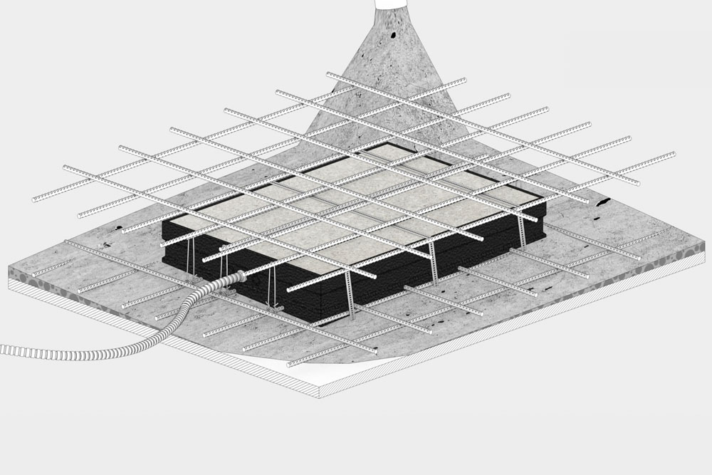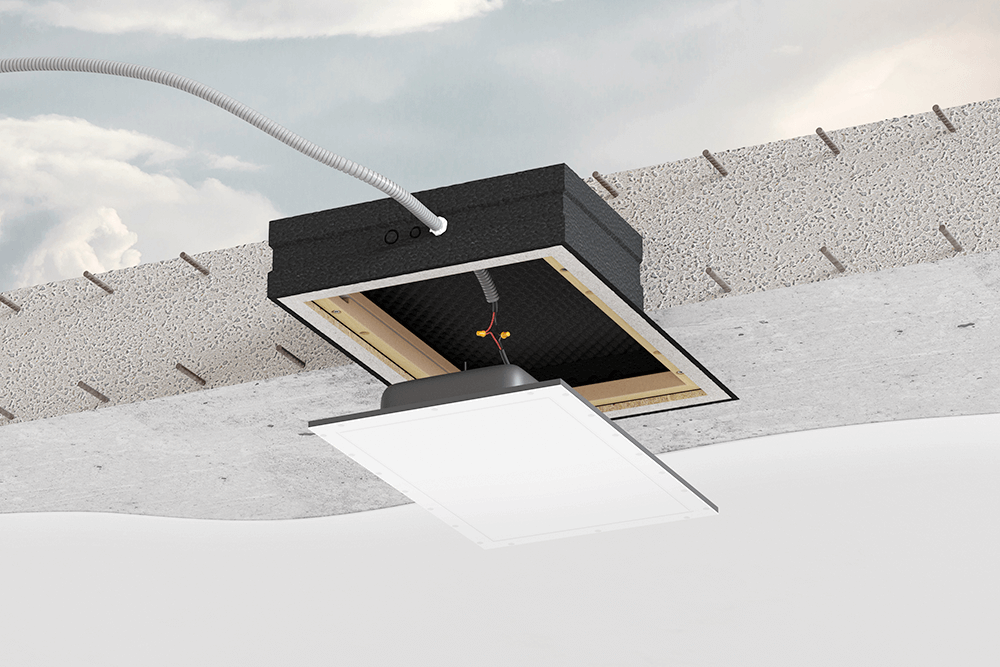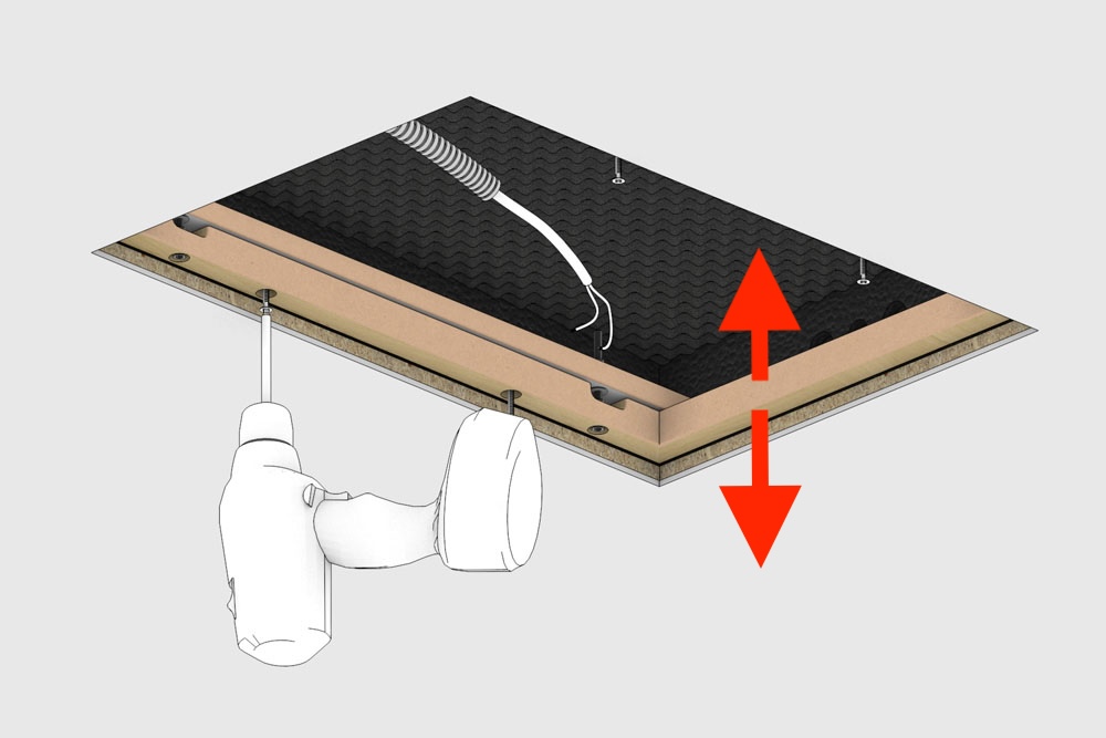 Der innenliegende, höhenverstellbare Rahmen erlaubt eine präzise Justierung des Lautsprechers nach dem Betoniervorgang und sorgt für ein perfektes Ergebnis – unabhängig von der Stärke des Decken- oder Wandputzes. Der resonanzarme EPS/EPP-Korpus reduziert Körperschall und unterstützt eine saubere Audiowiedergabe.