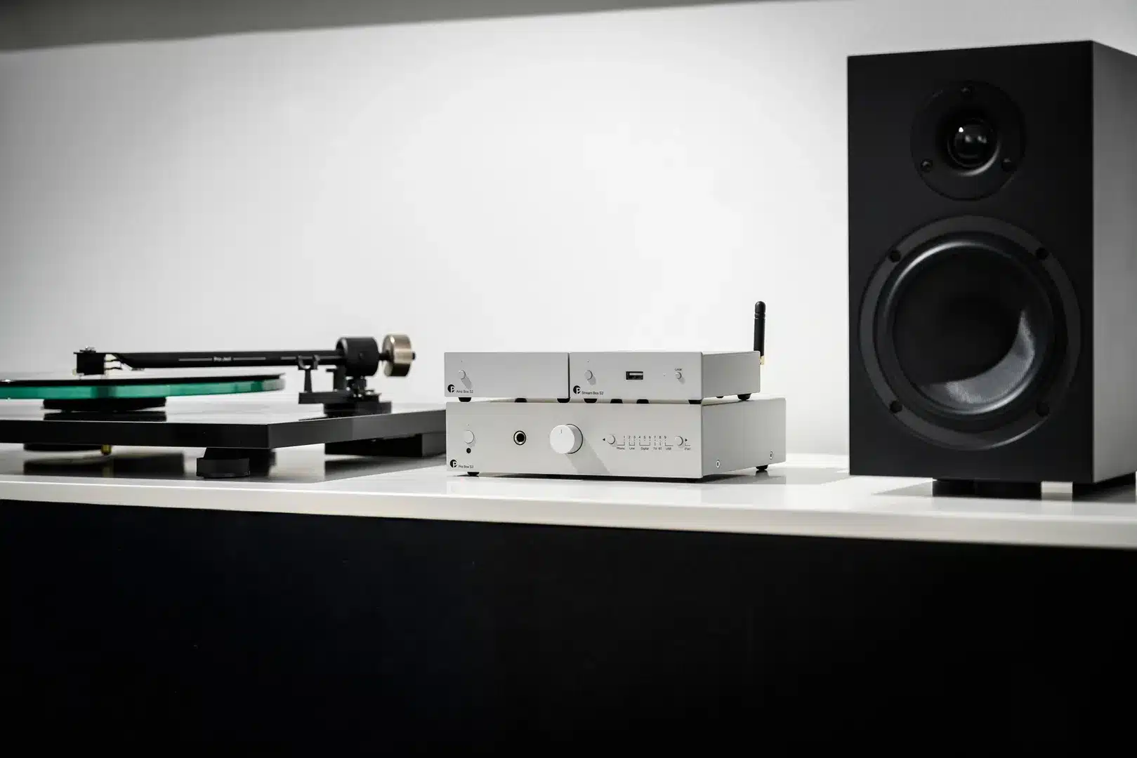 Für Vinylfreunde steht ein hochwertiger MM-Phono-Eingang mit 45 dB Verstärkung zur Verfügung. Digitale Quellen lassen sich über S/PDIF, asynchrones USB-C oder Bluetooth 5.0 mit aptX HD anbinden. Dank HDMI eARC kann auch der Fernseher direkt in das HiFi-System integriert werden.