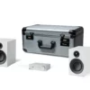 Kompaktes audiophiles HiFi-Komplettset mit Verstärker, Lautsprechern und Transport-Flightcase