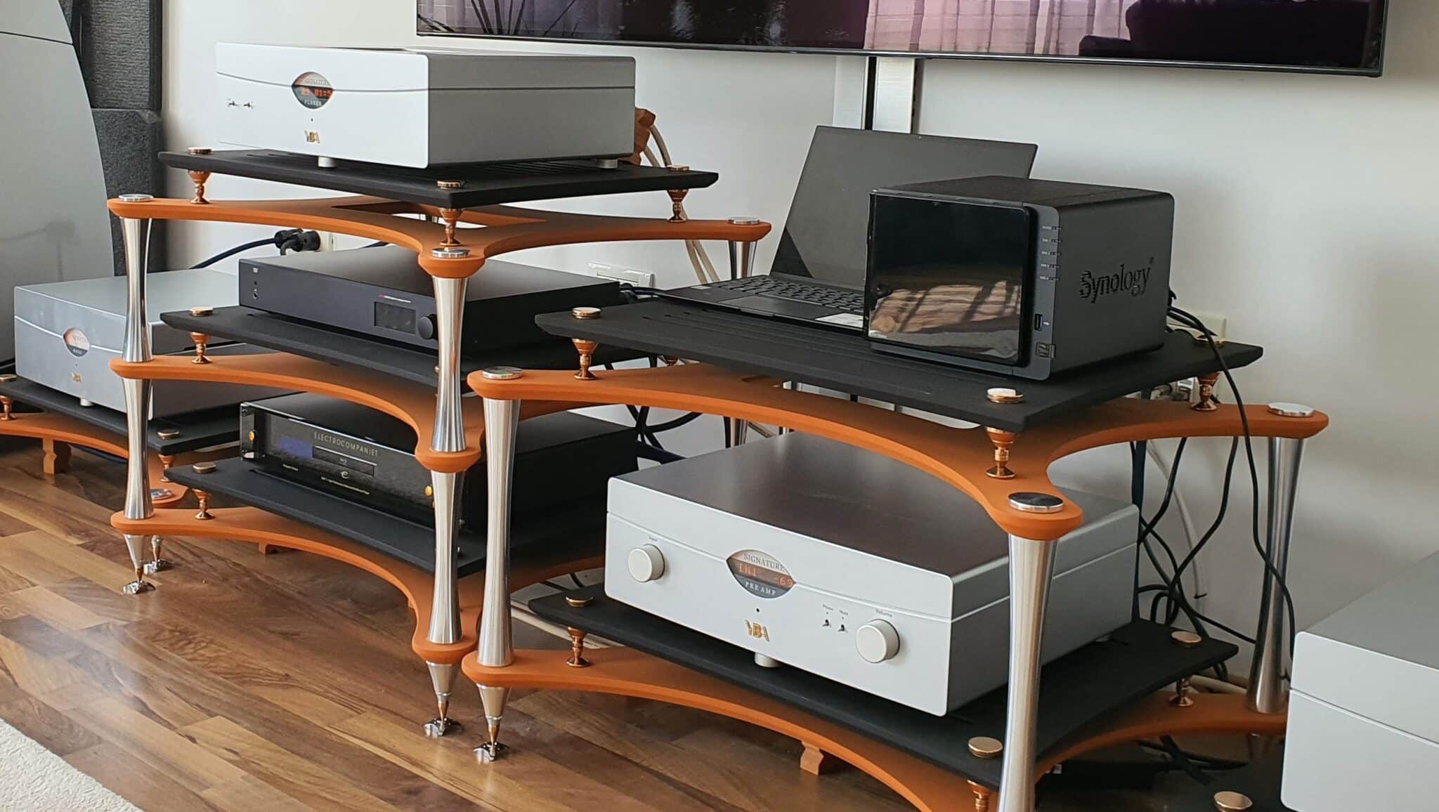 Das Design des Racks vermeidet bewusst parallele Linien, da diese unerwünschte Resonanzen begünstigen können. Inspiriert vom Instrumentenbau unterstützt die Konstruktion eine kontrollierte Ableitung von Schwingungen und sorgt für eine besonders stabile mechanische Basis.